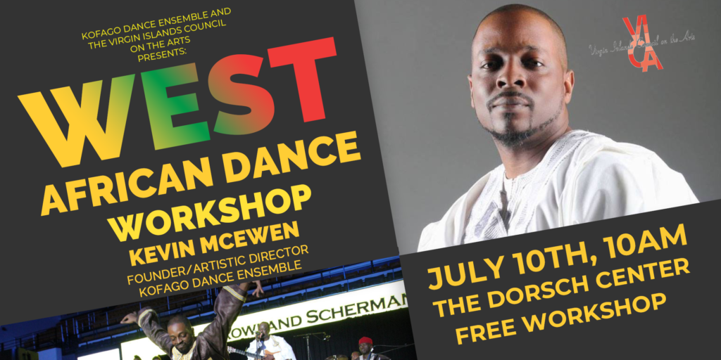 Join Kevin as he travels to the US Virgin Islands to teach a dance workshop in traditional West African dance and song technique. The workshop is free but please make sure you register at this link to attend. Date: July 10, 2021 Time: 10am Place: Dorsch Cultural Center, St. Croix