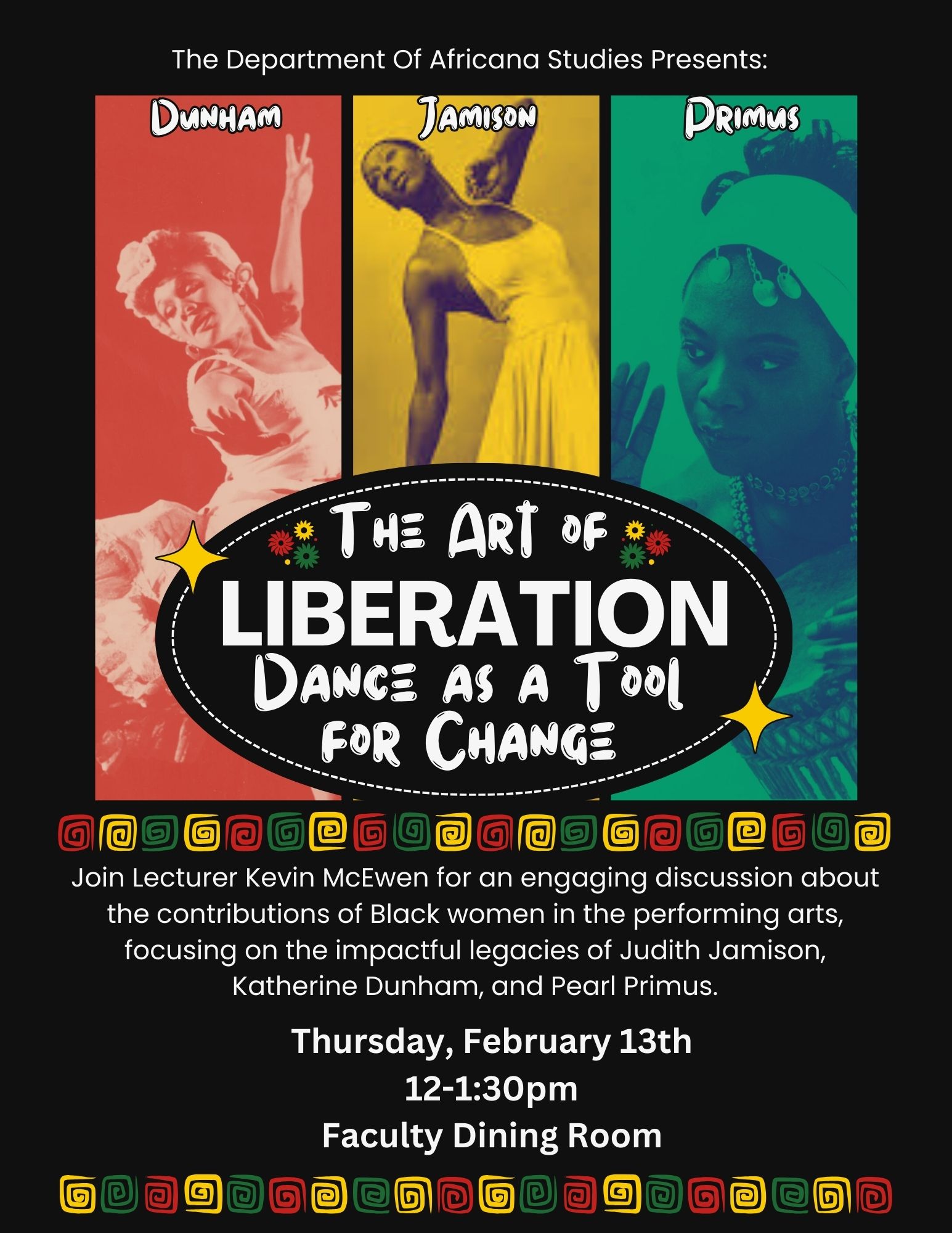 UPDATE – July 2025: after two years of working at Lehman College, I can honestly say that integrating performing arts work into Africana Studies is the way to go! This past semester, I had the privilege and the honor to work very closely with the Africana Studies department at Lehman College. During Black History Month, I gave my first lecture series entitled “The art of LIBERATION: Dance As A Tool For Change.” This lecture featured the work of three dancers: